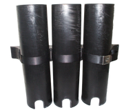 Large individual Triple Tuna tubes. Strapped to double dive rack that is fixed to vertical Transom. Dive rack can be customised to suit non vertical transoms also. Multifunctional rack to organise your tuna tubes or dive bottles.
